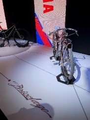 ヤマハの第一号オートバイYA1へのオマージュとしてデザインされた電動アシスト自転車が展示されていました。